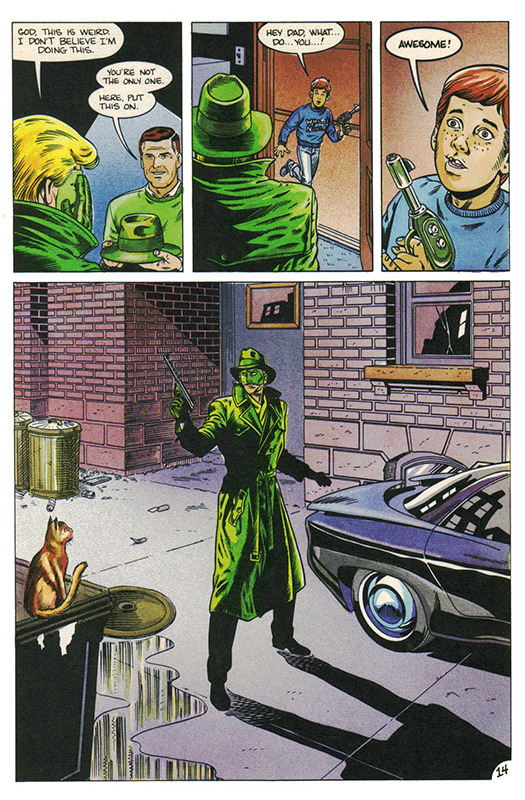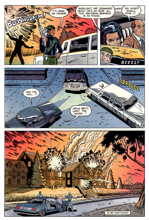 Angela DeVane, daughter of dead gangster Joey DeVane claimed The Green Hornet (II) killed her father...when she had, in fact, slain Joey!Angela lured The Green Hornet into a trap, then killed him with a bomb!